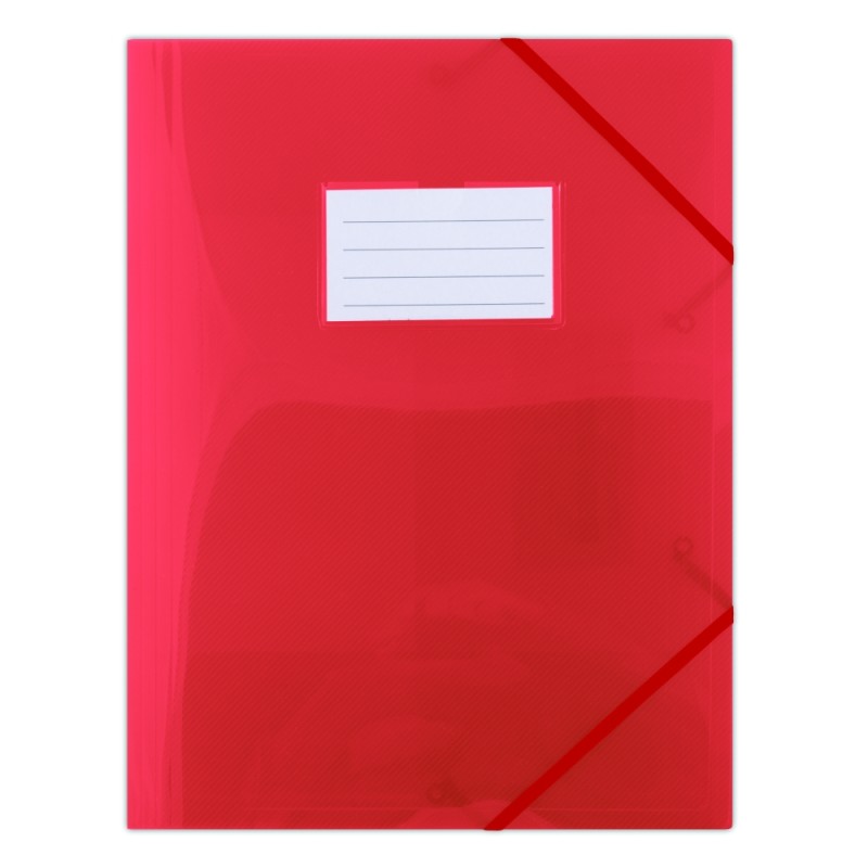 Odolné polypropylenové desky na uchování a přenos dokumentů v jednobarevném designu s jemným plastickým vzorem. Na přední straně umístěno okénko s vyměnitelným popisovatelným štítkem. Vnitřní klopy a fixační ploché gumičky v barvě desek přes rohy chrání vložený obsah.