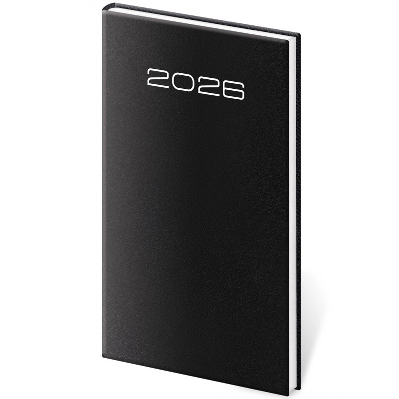 Povrch diáře je zhotoven z univerzálního materiálu na bázi zušlechtěného papíru, který díky své jemné struktuře získává vzhled koženky. Doporučujeme ražbu přes fólii, případně potisk povrchu sítotiskem. Diář obsahuje: osobní údaje, plánovač dovolené (měsíční přehled), plánovací kalendář, mezinárodní svátky, roční výhled, týdenní layout, adresář