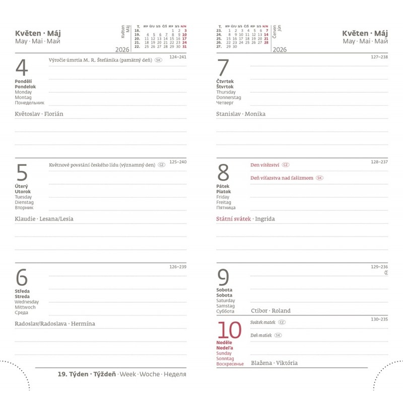 různé barvy, 128 stran, 1 dvoustrana = 1 týden