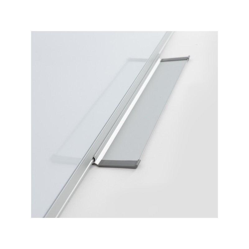 Bílá magnetická tabule vsazena do hliníkového eloxovaného rámu, zaoblené plastové rohy, 30 cm odkládací lišta, včetně montážního materiálu. Rozměr 60 x 45 cm.
