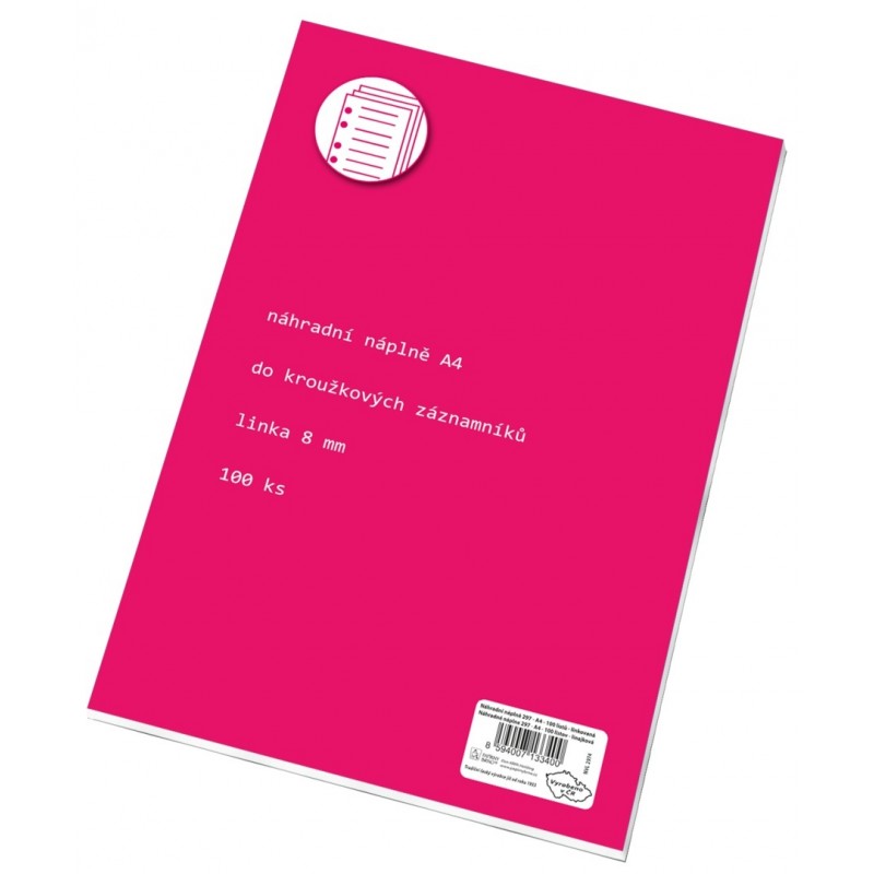 Náhradní vložky jsou opatřeny typizovaným děrováním pro zakládání do kroužkových mechanik. Vyrobeny z bezdřevého papíru. Počet listů 100, linka.