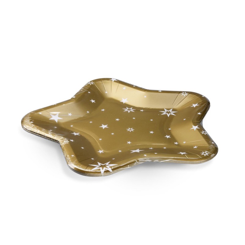 Papírové talíře tvar hvězdy zlaté 25cm/6ks 65260