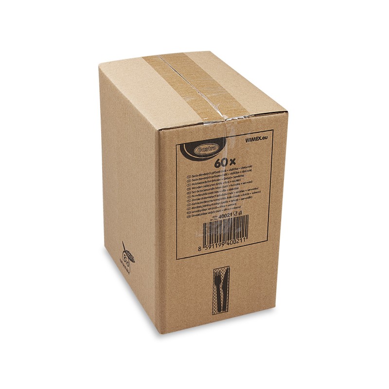 Dřevěný nůž + vidlička hygienicky balené/60ks 40021